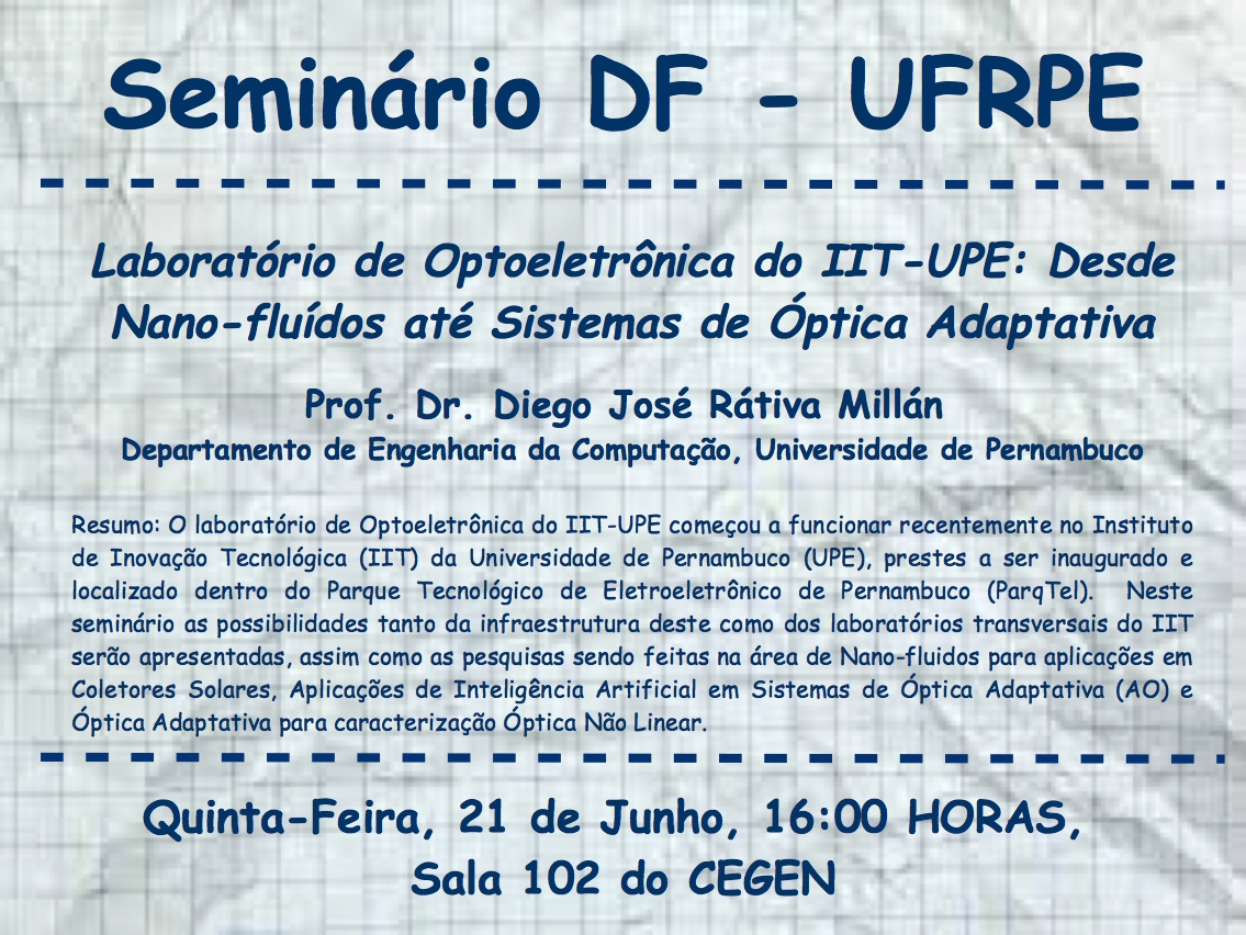 DF promove seminário sobre Laboratório de Optoeletrônica do IIT-UPE: Desde Nano-fluídos até Sistemas de Óptica Adaptativa