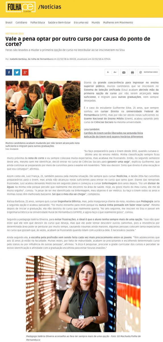 [FOLHA PE] Vale a pena optar por outro curso por causa do ponto de corte?