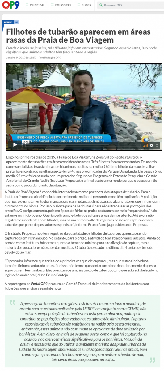 [PORTAL OPINIÃO] Filhotes de tubarão aparecem em áreas rasas da Praia de Boa Viagem