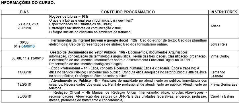 A Superintendência de Gestão e Desenvolvimento de Pessoas (SUGEP), por meio da Coordenação de Desenvolvimento de Pessoas (CDP), abre as inscrições para os servidores da UFRPE para o Curso de Capacitação em Atualização em Procedimentos de Secretaria, com carga horária de 60 horas.