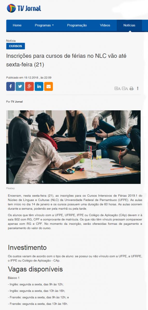 [TV JORNAL] Inscrições para cursos de férias no NLC vão até sexta-feira (21)