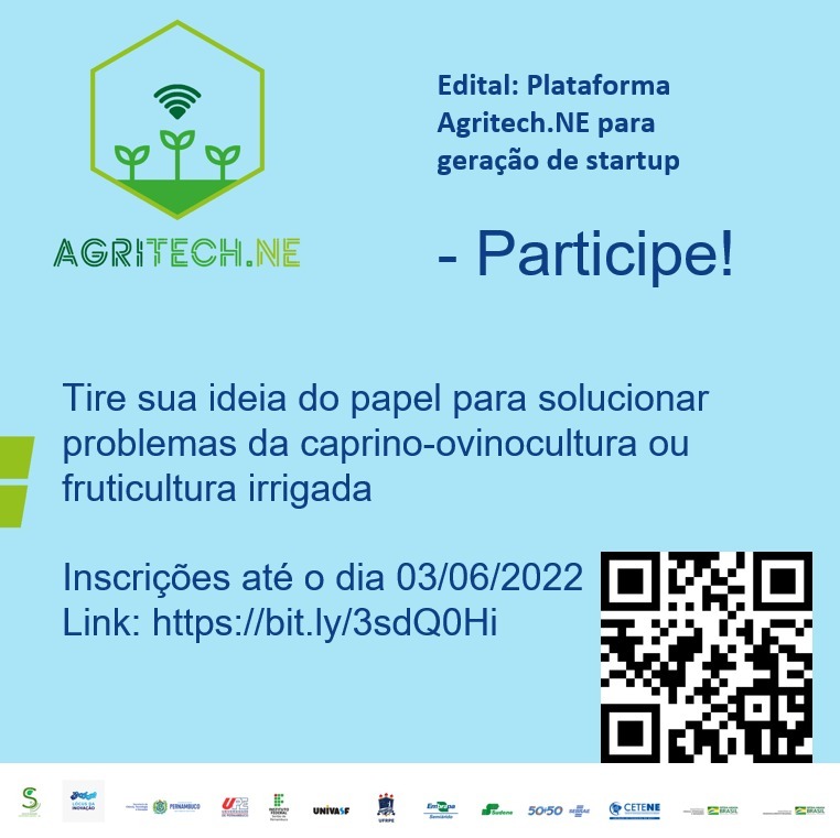 Submeta a sua ideia no Edital SEBRAE-PE Plataforma Agritech.NE para geração de startups e participe do programa de treinamento da Plataforma Agritech.