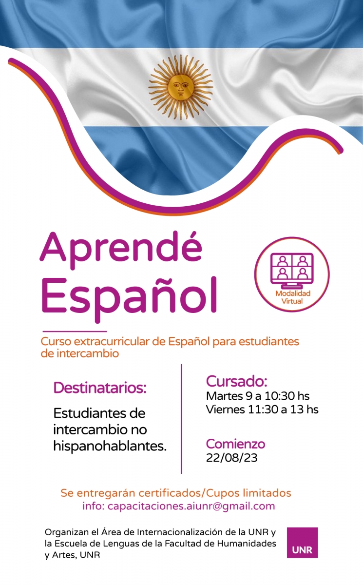O curso será virtual e terá certificado da Escola de Línguas da UNR.