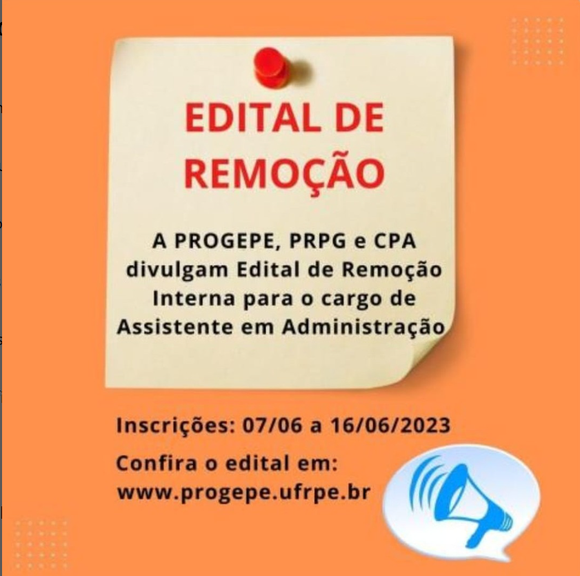 Progepe, PRPG e CPA divulgam edital de remoção